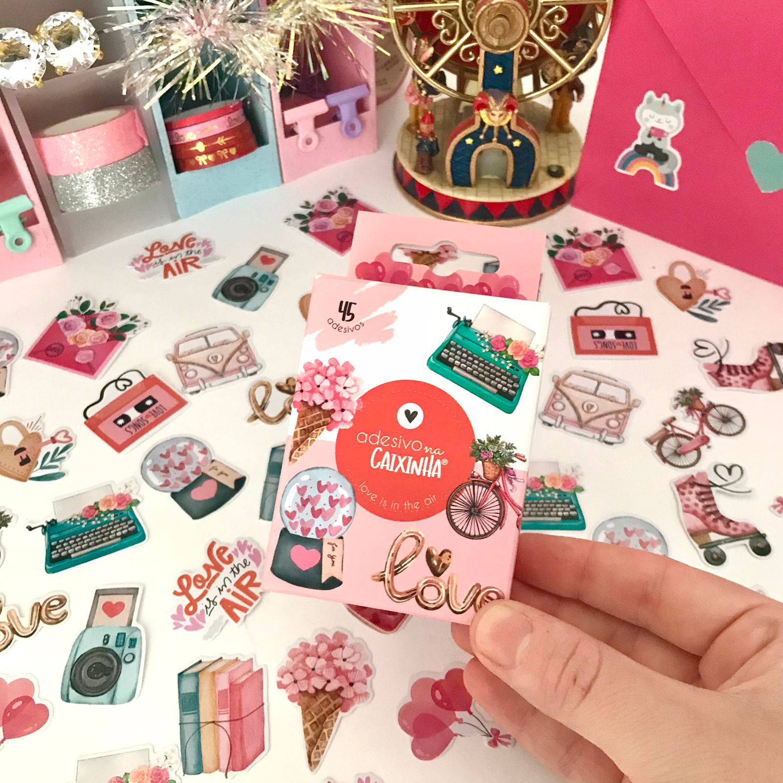 Enriqueça seu dia com a coleção "Vintage Amor" da Buendia. Com 45 adesivos recortados e laminados, prontos para usar, esta caixinha traz 15 desenhos únicos que combinam elementos vintage com temas românticos. Desde máquinas de escrever adornadas com flores até globos de neve com corações, cada adesivo é uma peça de arte que adiciona um toque especial aos seus cadernos, agendas, computadores e celulares.