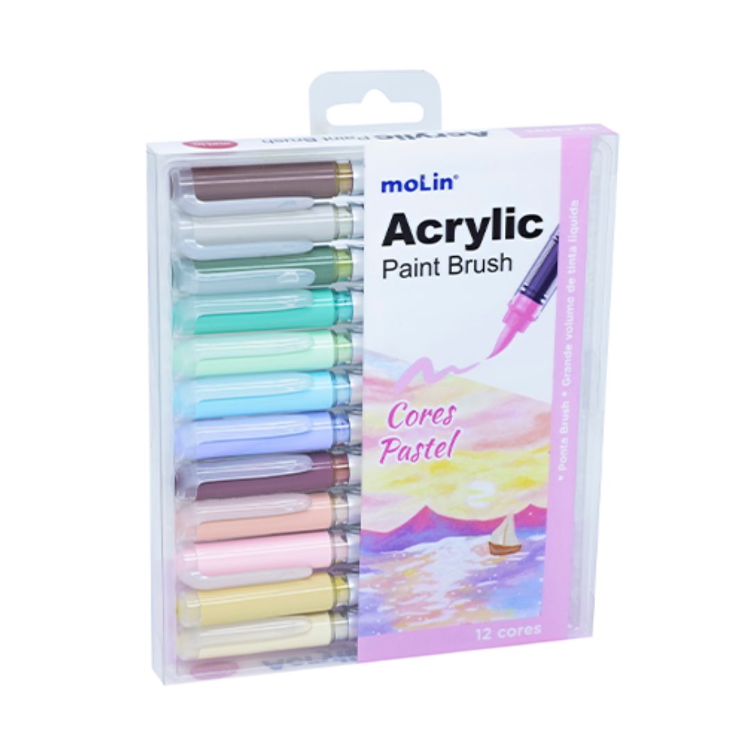 Expresse sua criatividade com tons suaves! Compre agora as Canetas Acrylic Paint Brush Pastel da Molin e leve elegância e arte ao seu dia a dia!