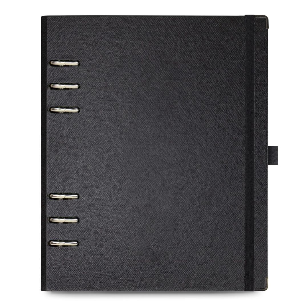 O Planner Premium Argolado A5 - Ótima - Company Preto não é apenas um item de organização, mas uma peça de design sofisticada. Sua capa dura é revestida com um material resistente e de acabamento acrílico, garantindo durabilidade e estilo. Os cantos arredondados adicionam um toque de elegância, e o fechamento com elástico assegura que suas anotações permaneçam seguras e privadas.