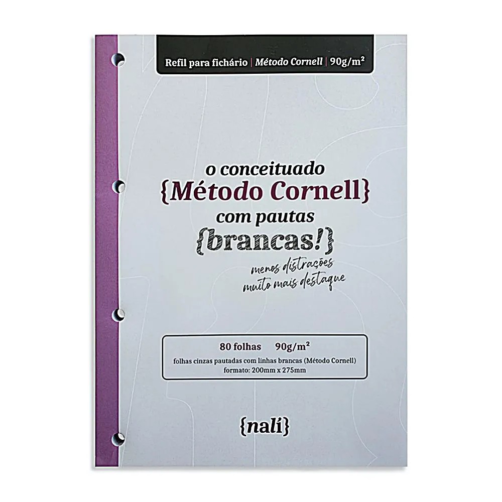 Organize suas ideias com o Bloco P/ Fichário Linhas Brancas A4 Método Cornell. Feita para destacar o que mais importa: suas ideias. Com suas folhas cinzas e pautas brancas, você pode facilmente destacar o que é importante para você e ter tudo organizado na hora de estudar.